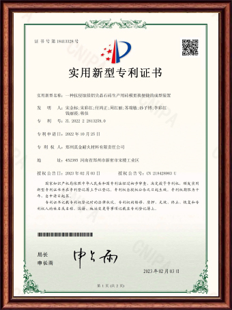 | ZL 2022 2 2314114.6 | 一種堇青石與碳化硅磚的原料混合用破碎攪拌裝置 | 實(shí)用新型專利證書 |