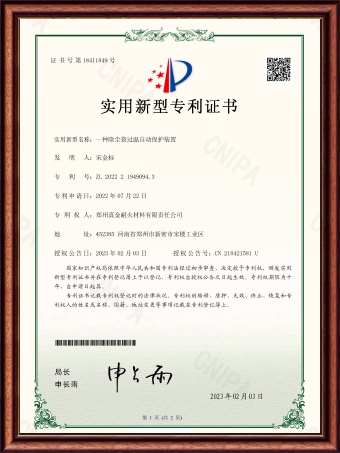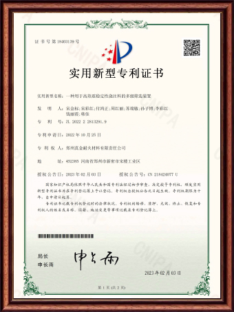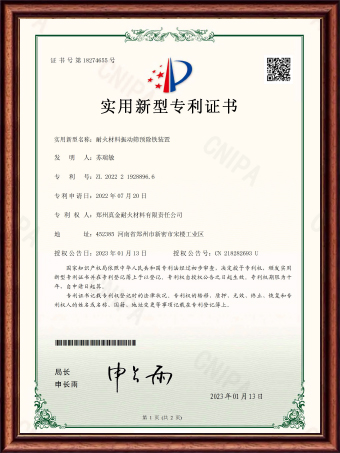 | ZL 2022 2 2813291.9 | 一種用于高熱震穩(wěn)定性澆注料的多級(jí)篩選裝置 | 實(shí)用新型專利證書 |