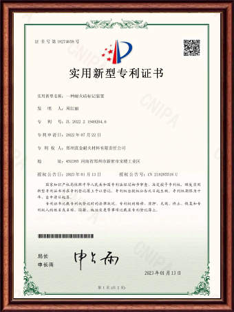 | ZL 2022 2 1949204.6 | 一種耐火磚標(biāo)記裝置 | 實(shí)用新型專利證書 |